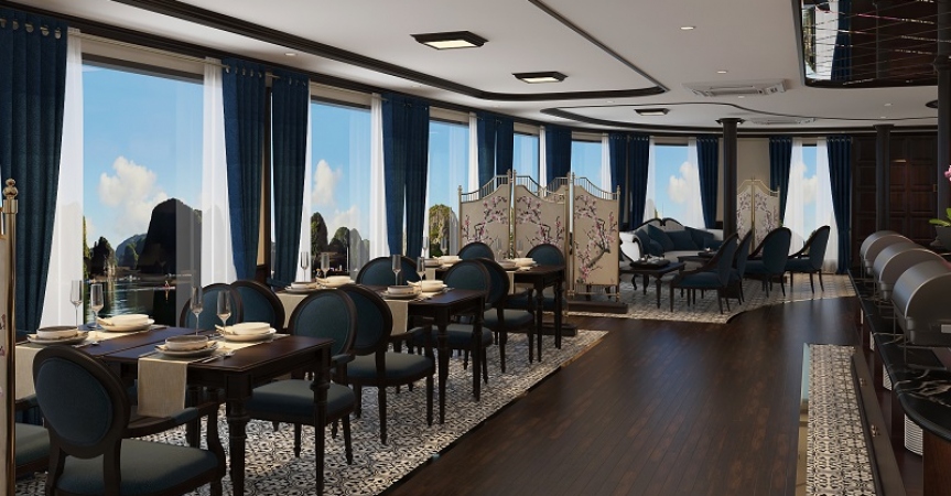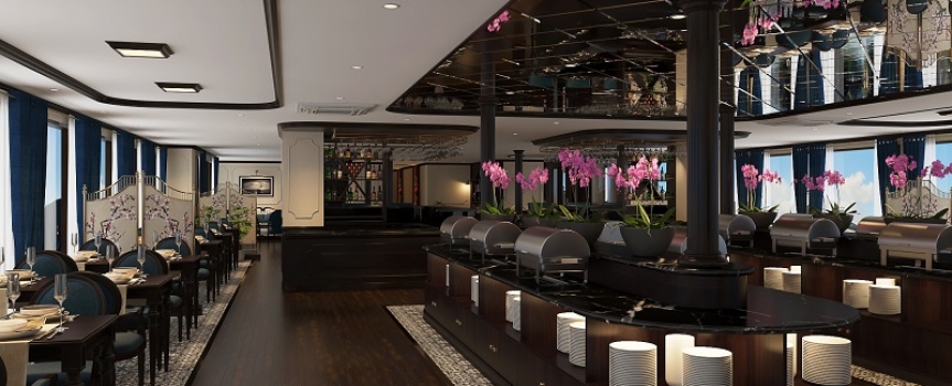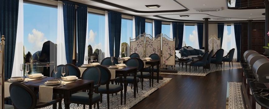 07.30 Xe đón khách trong khu vực phố cổ Hà Nội đi Hạ Long (với trường hợp khách hàng đặt dịch vụ xe của Dynasty Cruises). 11.30 Quý khách đến cảng tàu Sun Group, nhân viên Dynasty Legend mời khách vào nhà chờ trước khi bắt đầu hành trình đi thăm quan Vịnh. 12.15 Nhân viên đưa quý khách lên du thuyền và nhận phòng. Trong lúc thuyền trưởng giới thiệu chương trình tổng quan về lịch trình và các điểm đến cũng như các thông tin về an toàn, quý khách sẽ được mời thưởng thức nước trái cây tươi. 13.00 Tàu bắt đầu khởi hành đưa du khách qua các đảo nổi tiếng (như trường quay Đông Dương, Hòn Ấm…) trên Vịnh Bái Tử Long. Quý khách sẽ thưởng thức bữa trưa trên tàu trong khi chiêm ngưỡng vẻ đẹp hoang sơ với khung cảnh thiên nhiên quyến rũ.. 14.30 Quý khách tiếp tục khám phá vẻ đẹp huyền bí của hang Cỏ (hay còn gọi là Thiên Cảnh Sơn). Thư giãn và đi dạo trên bãi biển (không tắm biển) tại khu quần thể hang Cỏ. 15.45 Quay trở lại du thuyền, quý khách có thể tận hưởng đồ uống với chương trình khuyến mại giờ vàng (từ 16h30-19h00) giảm 30% giá tất cả các loại đồ uống: cocktail, moctail, mixed drinks (đồ uống pha) trong thực đơn đặc biệt. Quý khách chiêm ngưỡng vẻ đẹp tuyệt vời của vịnh Bái Tử Long khi hoàng hôn buông xuống, được ngắm nhìn những đảo đá tuyệt đẹp, thư giãn, tận hưởng không khí trong lành mà khó có thể cảm nhận được ở đất liền, khi tàu về khu vực điểm ngủ Cống Đỏ. 16.30 Quý khách chèo kayak trên tàu tại điểm ngủ Cống Đỏ. 18.00 Quý khách yêu thích nấu ăn và ẩm thực Việt có thể tham gia lớp học dạy nấu ăn trên boong tàu dưới sự hướng dẫn của Bếp trưởng giàu kinh nghiệm (nếu thời tiết không cho phép sẽ làm trong khu vực nhà hàng). 19.15 Quý khách thưởng thức bữa tối trước vẻ đẹp lung linh huyền ảo của Vịnh Bái Tử Long về đêm. 21.00 Đây là thời gian tự do cho Quý khách nghỉ ngơi, thư giãn trên tàu, xem phim, tham gia các trò chơi trên tàu, trải nghiệm các dịch vụ massage – spa (phí dịch vụ Massage & Spa không bao gồm trong chương trình) hay thưởng thức đồ uống tại quầy bar. Với quý khách có nhu cầu tham gia hoạt động câu mực và câu cá, chúng tôi cung cấp các dụng cụ miễn phí tại quầy lễ tân. Qua đêm trên Vịnh Bái Tử Long.