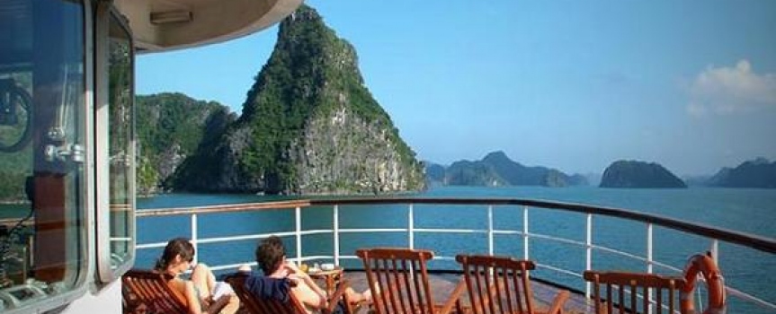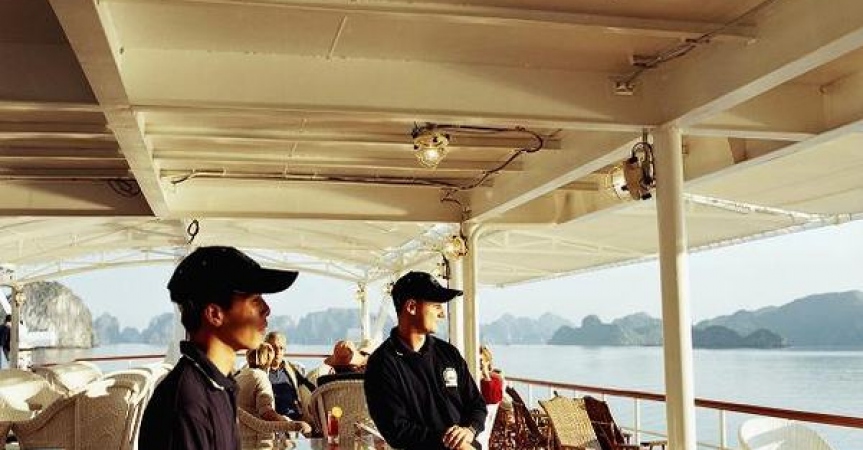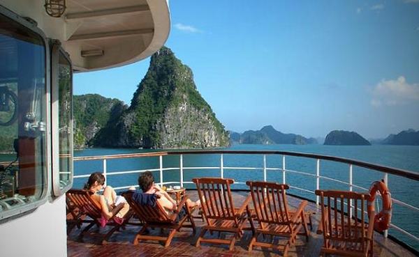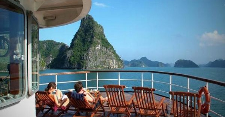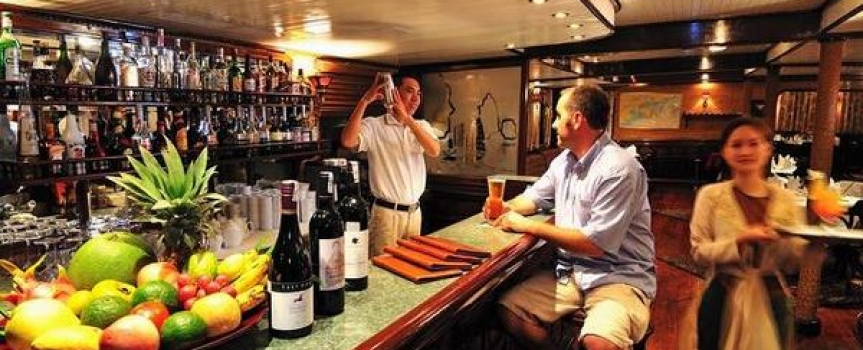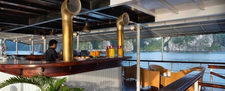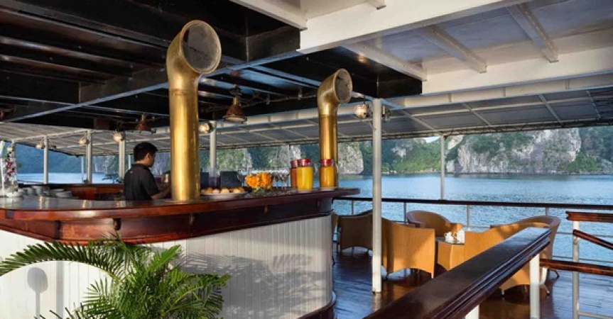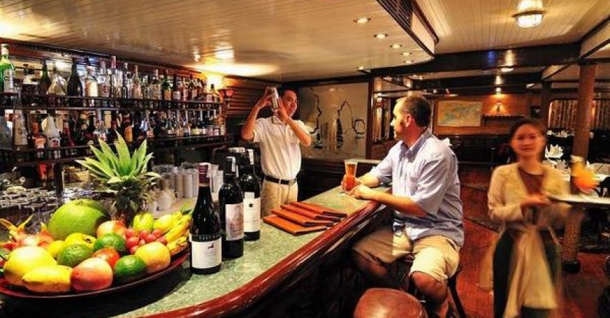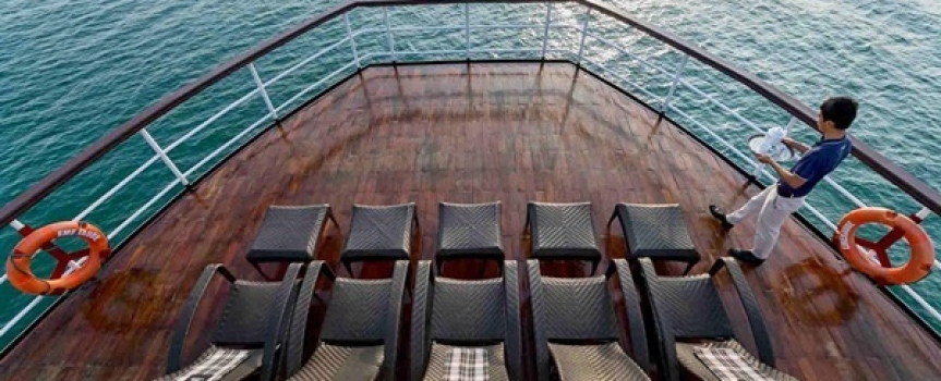12:30 – 12:45 Khách lên tàu, nhận phòng và thưởng thức Welcome drink trong lúc giới thiệu chương trình