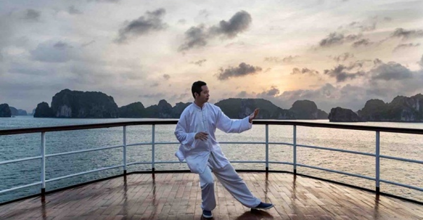 6:30 – 7:00 Chiêm ngưỡng bình minh trên Vịnh cùng bài tập Tai Chi