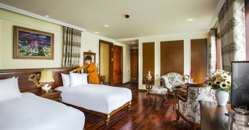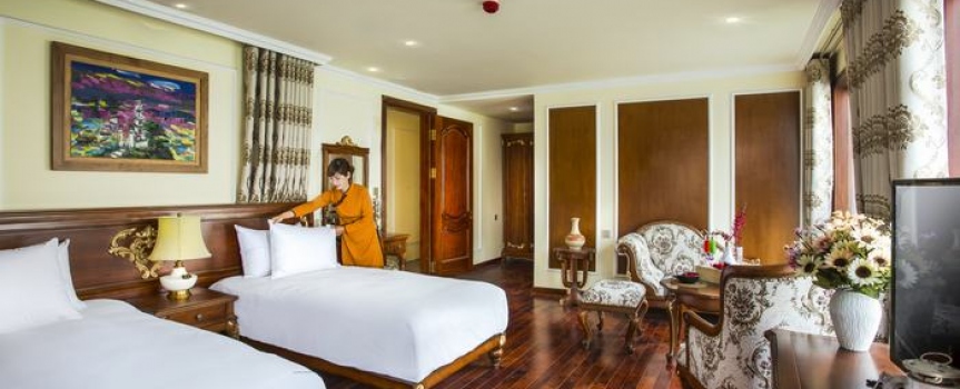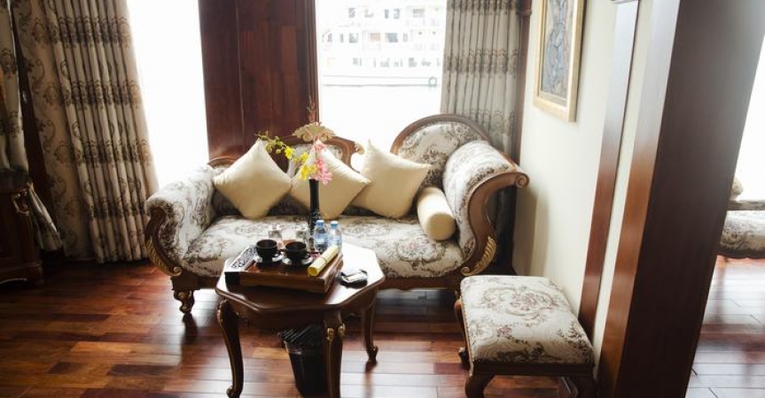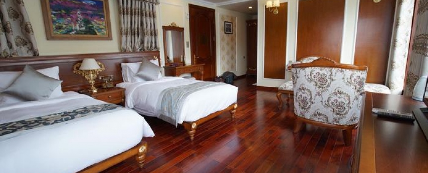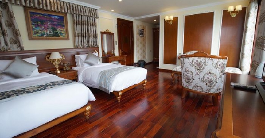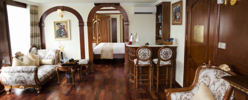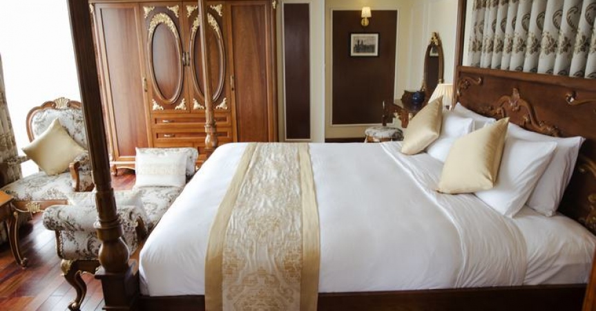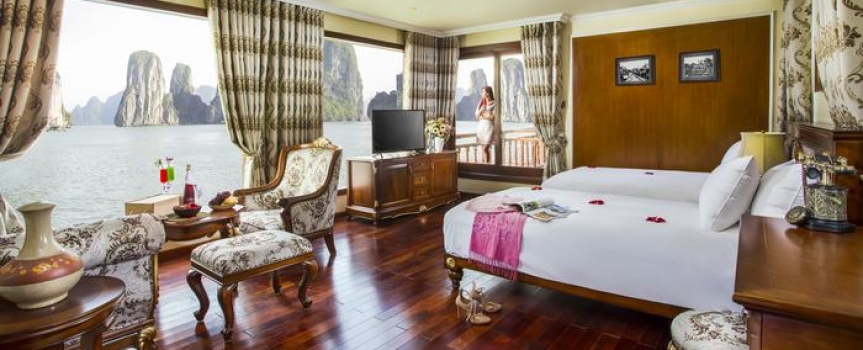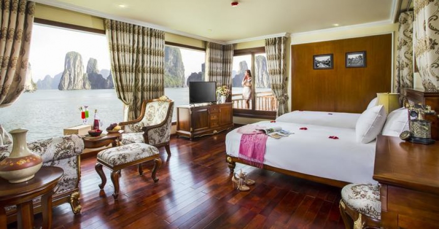 12.30: Quý khách xuống tàu Emperor Cruises và thưởng thức đồ uống chào mừng trong khi quản lý tàu cung cấp cho quý khách các thông tin tổng quan về chương trình tour và các chỉ dẫn về an toàn trên tàu. Quý khách làm thủ tục nhận cabin.