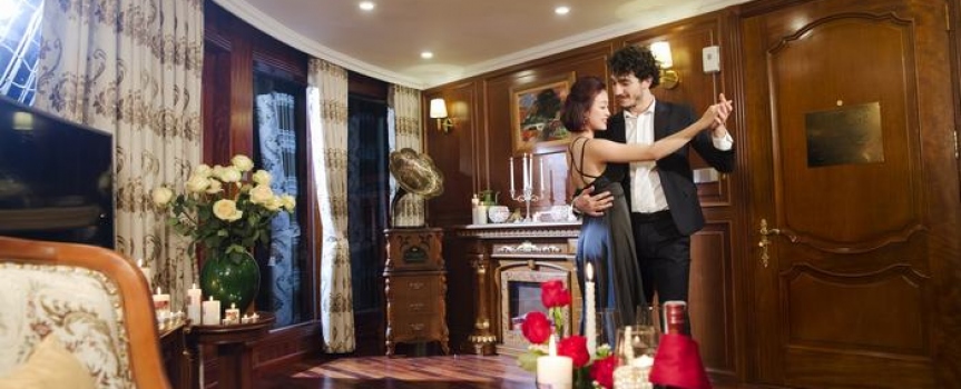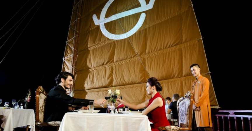 19.30: Thưởng thức bữa ăn phục vụ theo set menu trong khi tận hưởng vẻ đẹp Vịnh Bái Tử Long về đêm.