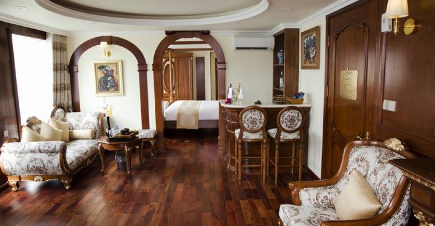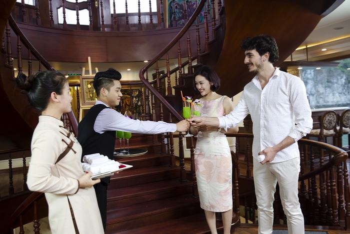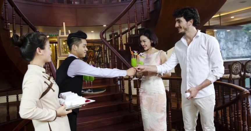 12.30-15.00: Quý khách thưởng thức bữa trưa trên tàu trong khi tàu tiếp tục đưa quý khách đi khám phá cảnh đẹp vịnh Bái Tử Long.