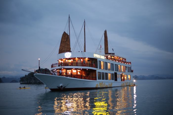 21.00: Thưởng thức các hoạt động buổi tối trên tàu: xem phim, chơi Board Game hoặc là các hoạt động massage và spa hoặc đi câu mực đêm. Ngủ đêm trên tàu