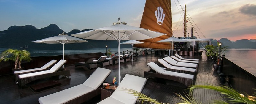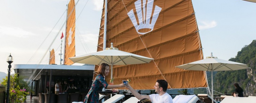 18h00 Đặc biệt, quý khách không quên tham gia “tiệc hoàng hôn” trên khu vực tắm nắng mở của tàu trong nhịp điệu của âm nhạc cùng với bầu không khí tiệc tùng của chuyến đi. Đừng bỏ lỡ ưu đãi đặc biệt “Giờ hạnh phúc - mua một tặng một” để tận hưởng những khoảnh khắc đáng nhớ trong chuyến đi.