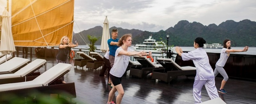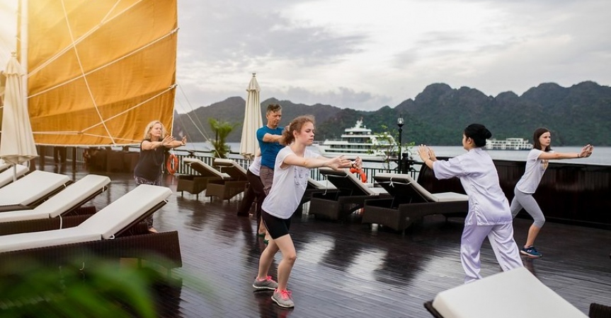 06h30 Tham gia hoạt động Tai Chi trên boong tàu trong khoảng 30 phút. Đón bình minh trên vịnh.