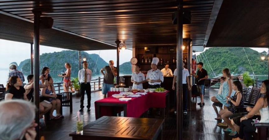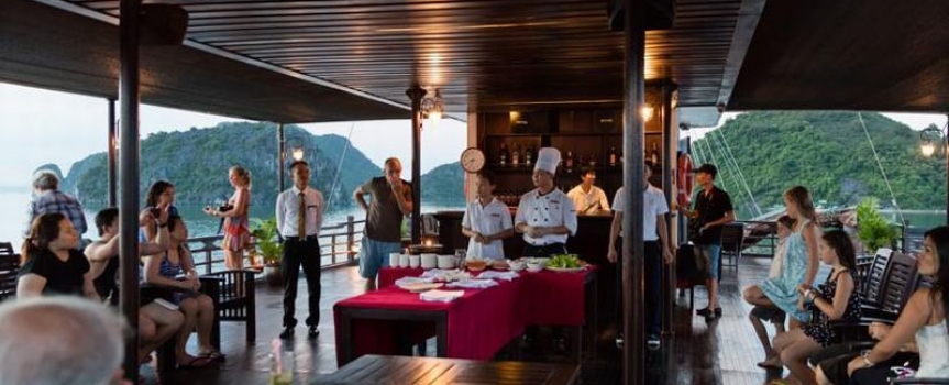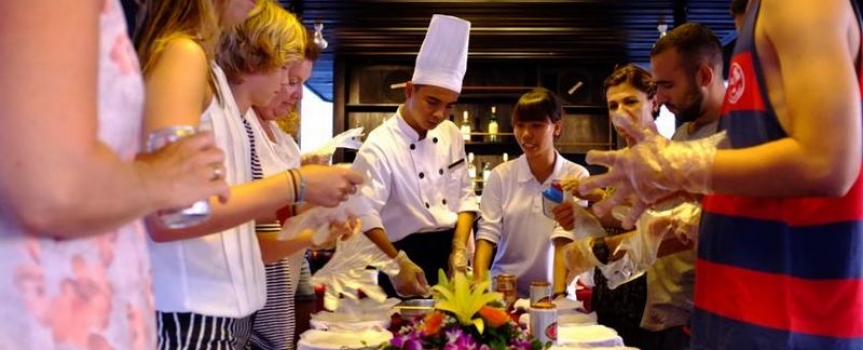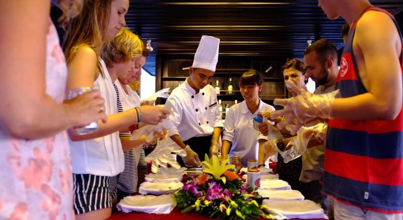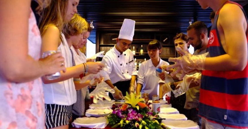 Tham gia lớp học nấu ăn trên boong tàu: món nem cuốn.