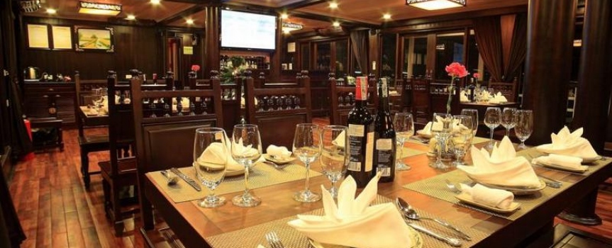 Bữa tối với các món Việt Nam được phục vụ trên tàu.