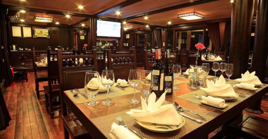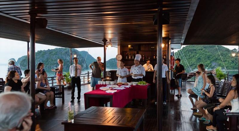Các hoạt động buổi tối bao gồm: xem phim về văn hóa Việt Nam, nghe nhạc, chơi bài, chơi cờ, đọc báo. Quý khách cũng có thể thử vận may với hoạt động câu mực đêm trên tàu.