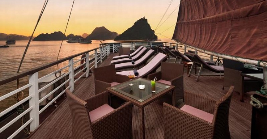 Bắt đầu ngày mới với hoạt động Tai Chi trên boong tàu. Quý khách đón bình minh trên vịnh trong khi nhấm nháp một tách trà hoặc cà phê.