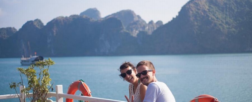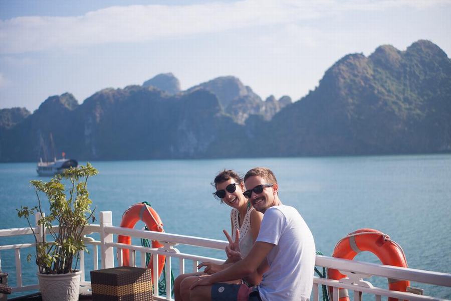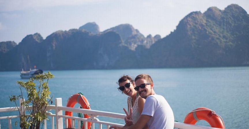 - Quý khách nhận phòng, thưởng thức ly hoa quả chào mừng trong khi nghe Thuyền trưởng giới thiệu về chương trình và các quy định an toàn trên tàu.
