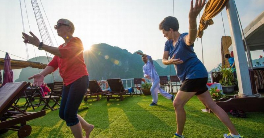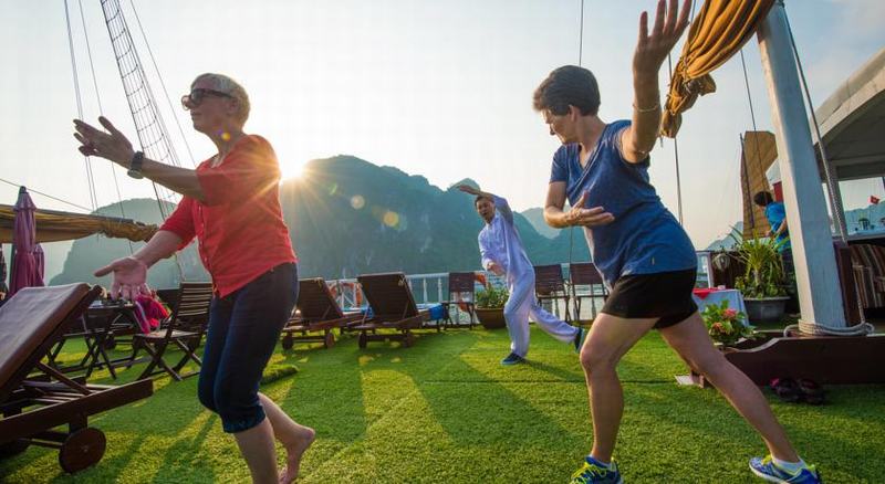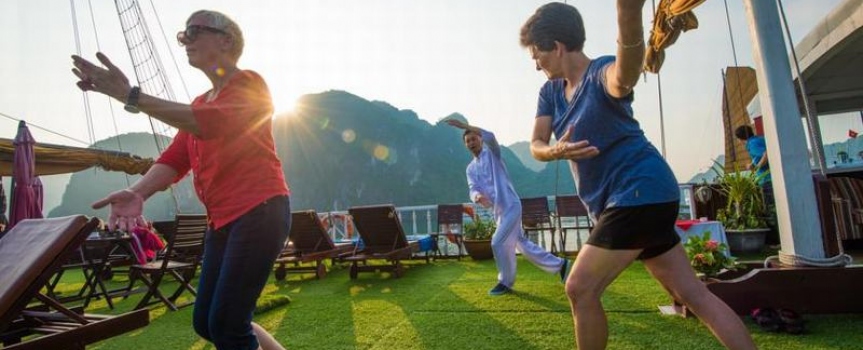 06:00 Thức giấc lúc sáng sớm để tham gia lớp học Tai Chi hoặc thưởng thức khoảnh khắc tuyệt đẹp của thiên nhiên trên vịnh khi những tia nắng đầu tiên của ngày mới xuyên qua những đám mây.