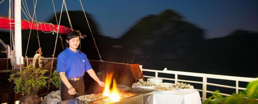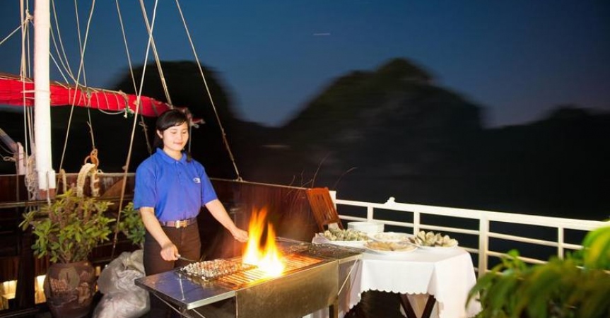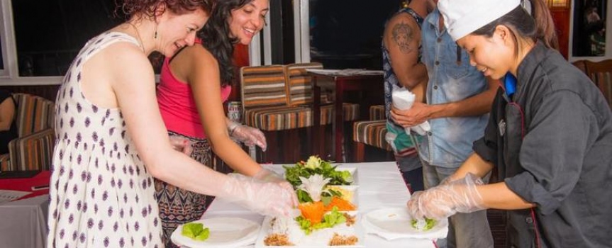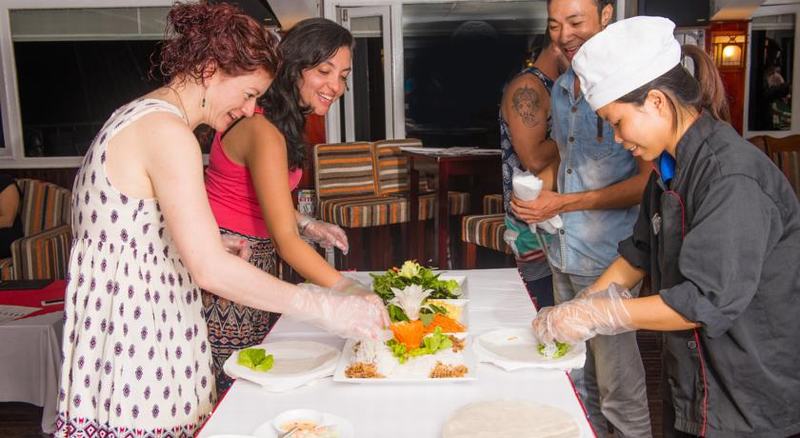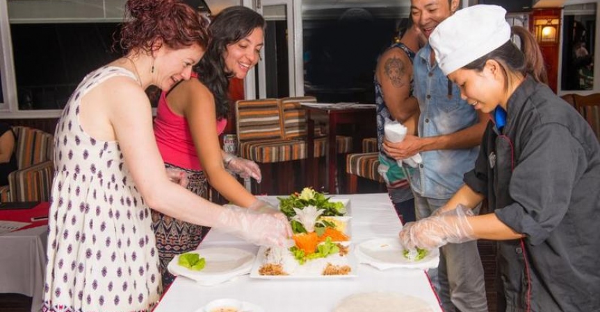 18.30 Tham gia lớp học nấu ăn trên boong tàu, thử tài nấu ăn với các món Việt Nam.