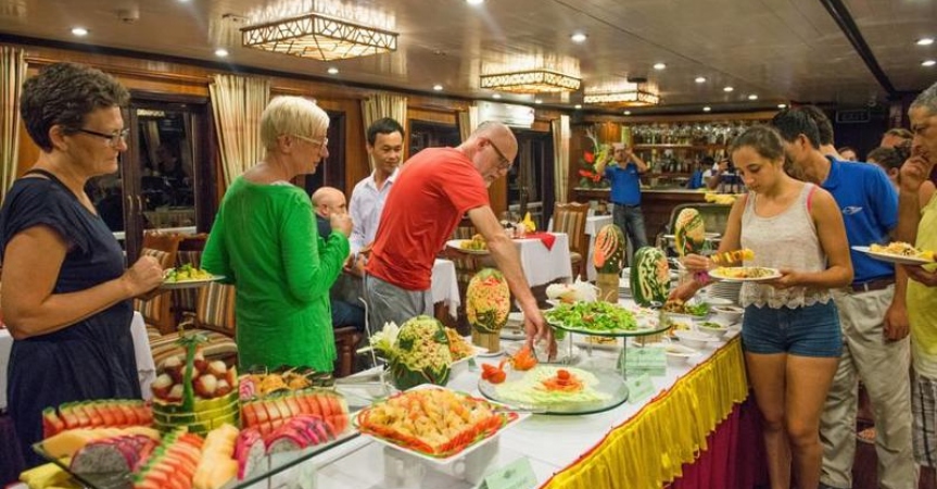 10:30 Dùng bữa trưa buffet trong khi tàu quay lại cảng.