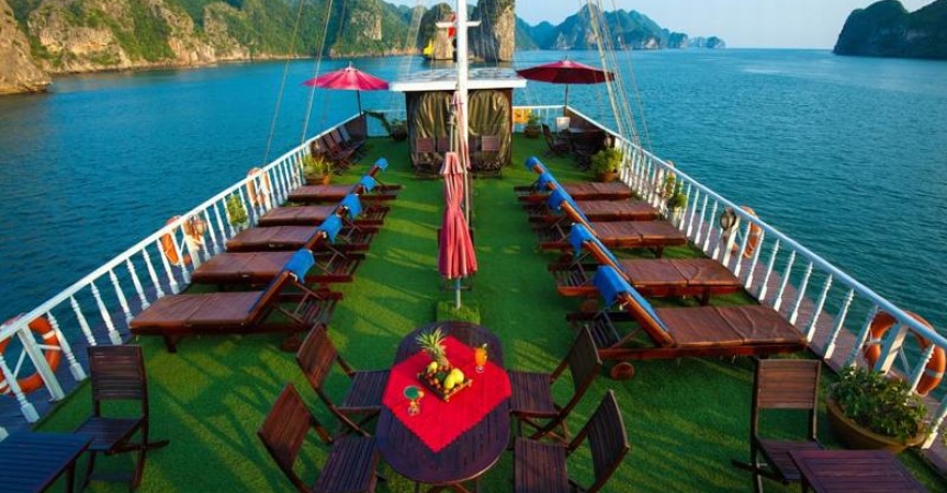 09:15 Trở lại tàu nghỉ ngơi và chuẩn bị check out. Cabin sẽ được dọn dẹp sạch sẽ trong khi quý khách thưởng thức đồ uống và tắm nắng trên boong tàu của Gray Line.