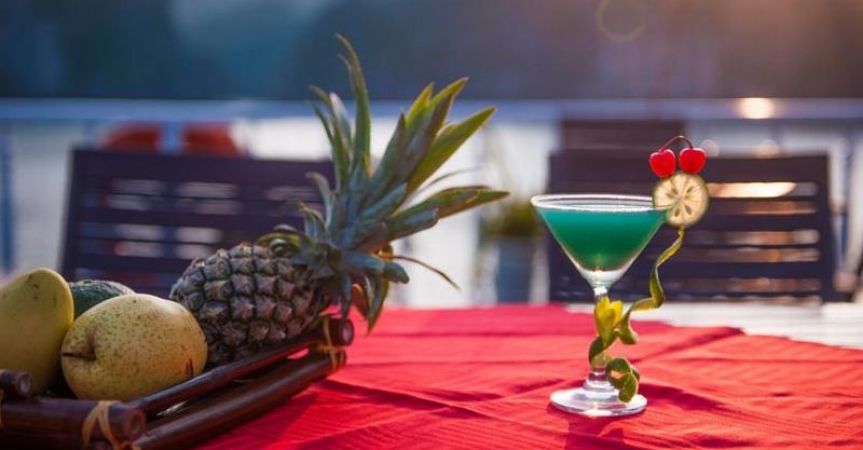 17:30 Thư giãn, ngắm hoàng hôn trên vịnh, thưởng thức trái cây tươi trên boong tàu.