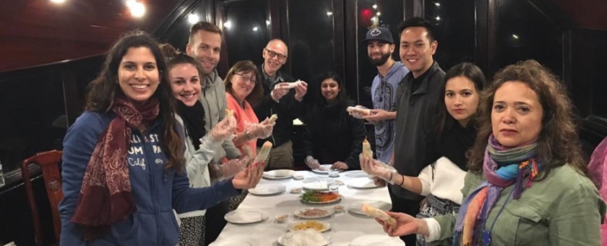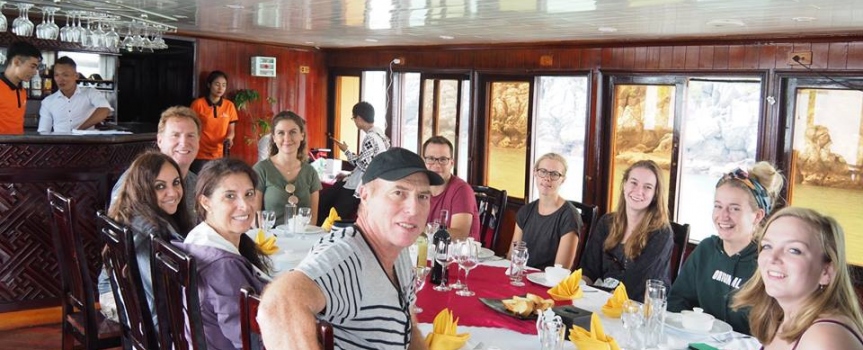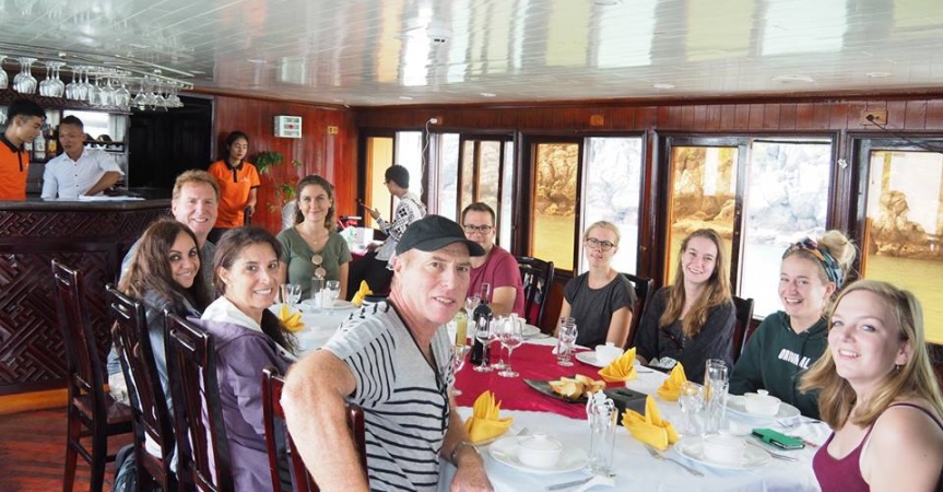 Nhóm khách pháp đang ăn trưa tại nhà hàng