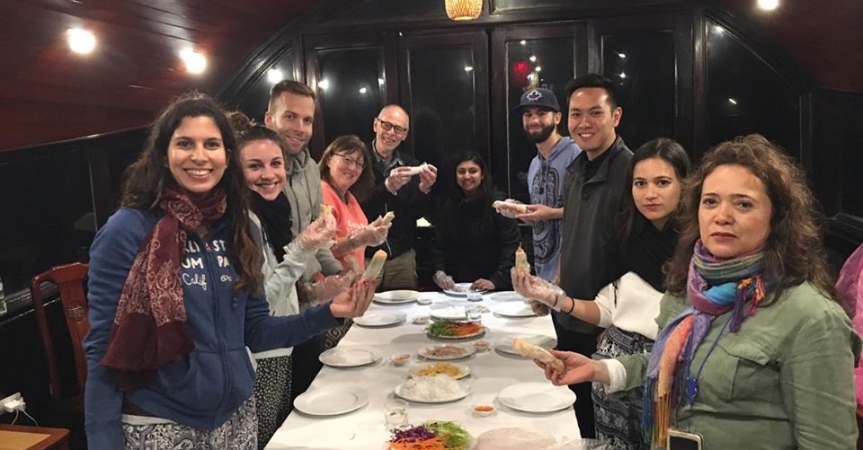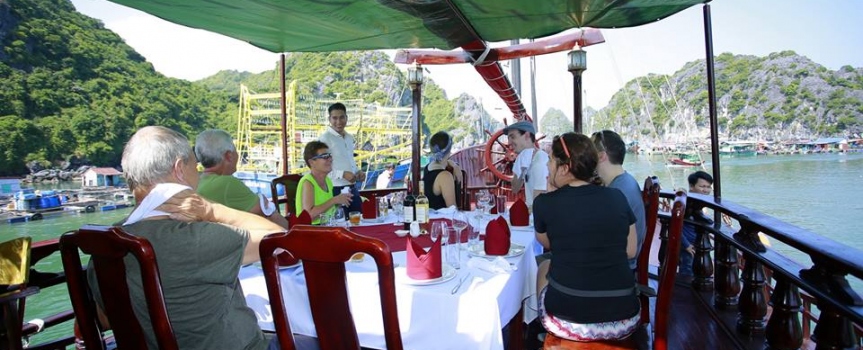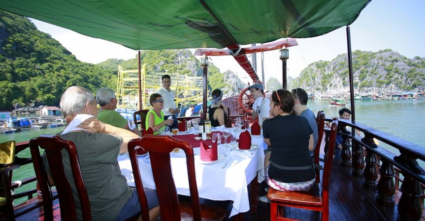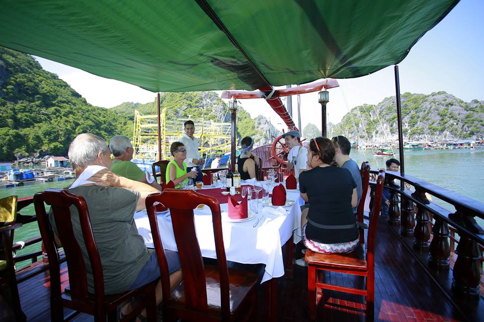 Bữa trưa trên sundeck vừa ăn vừa ngắm cảnh làng chài thì còn gì bằng