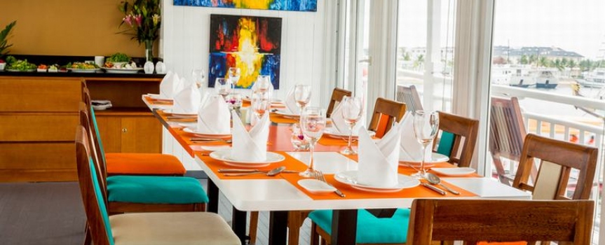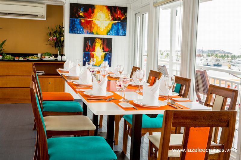 19:30 Bữa tối được phục vụ ở khoang chính của nhà hang.