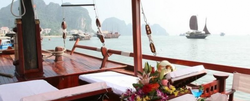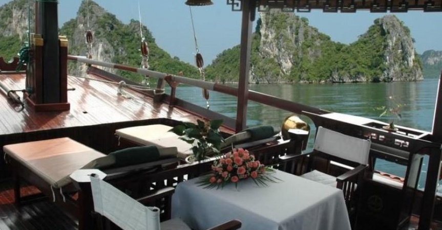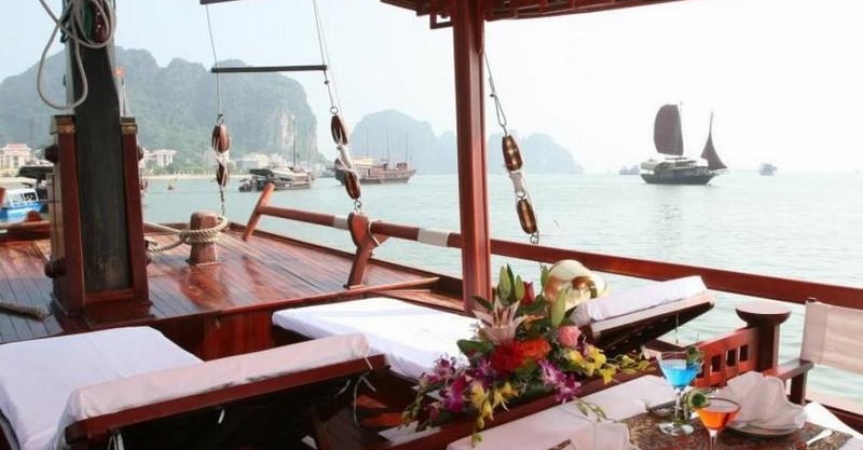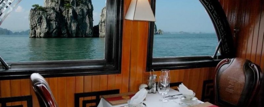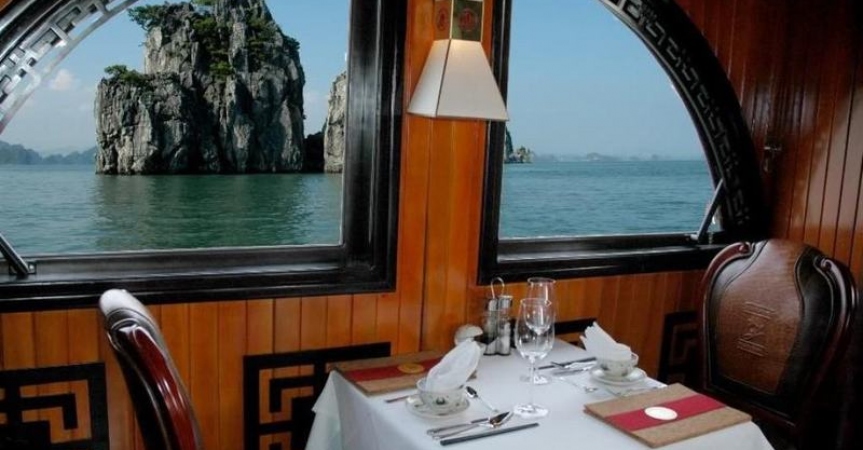 13.30 - 15.00: Vừa ăn trưa, vừa ngắm cảnh Vịnh Bái Tử Long tráng lệ.