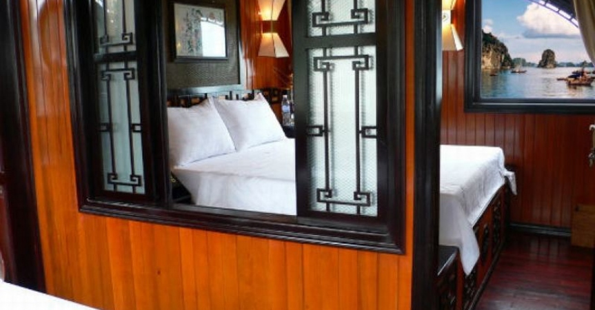 Du thuyền L'Amour Junk Hạ Long chỉ gồm duy nhất 1 cabin sang trọng, thích hợp cho kỳ nghỉ lãng mạn của cặp đôi hưởng tuần trăng mật hoặc kỷ niệm ngày cưới, hoặc những gia đình nhỏ, nhóm bạn thân thiết mong muốn không gian riêng tư.