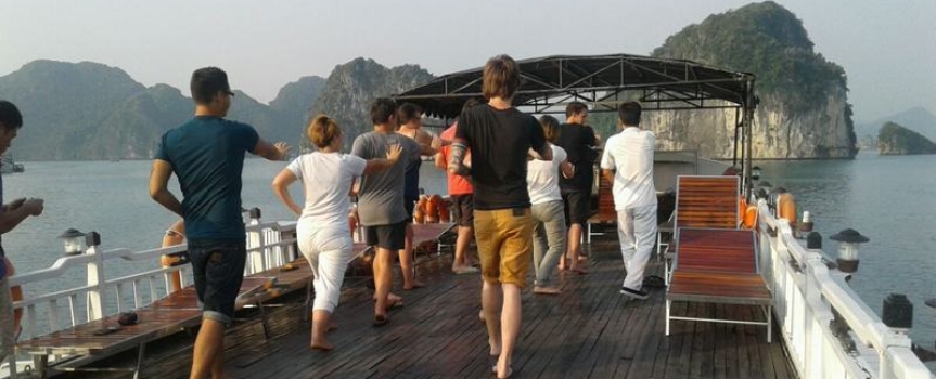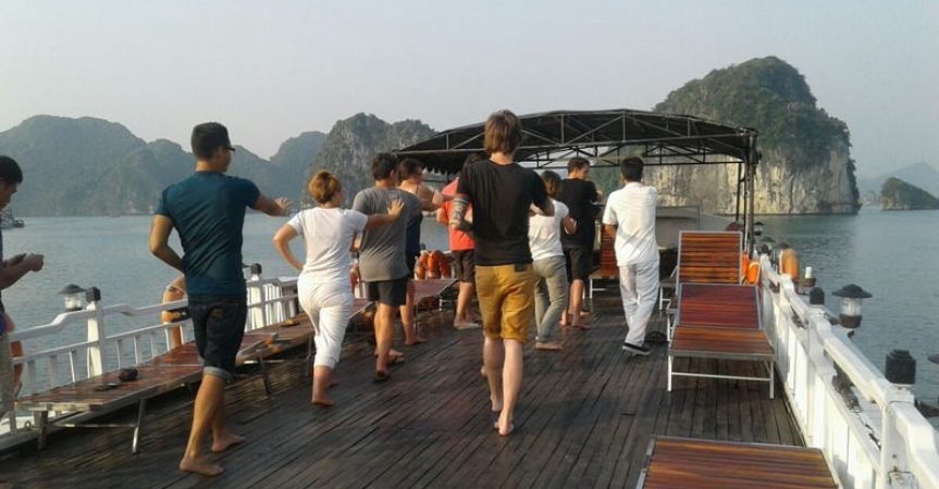 6h30: Quý khách tham gia tập dưỡng sinh trên Sun deck.