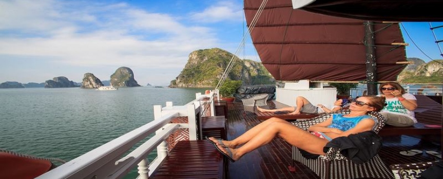 - Quý khách tắm biển tại đảo Titop hoặc thư giãn trên Sun- deck ngắm cảnh vịnh tại The Bay.