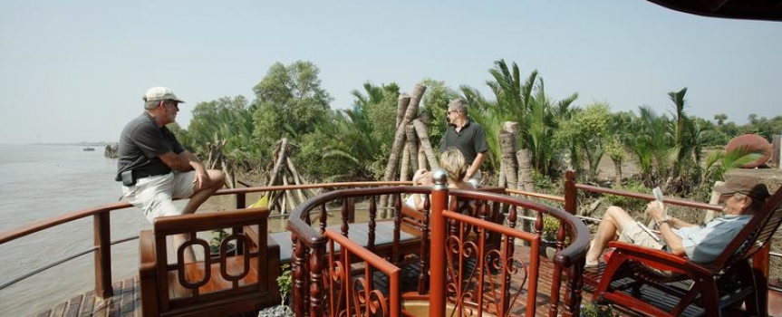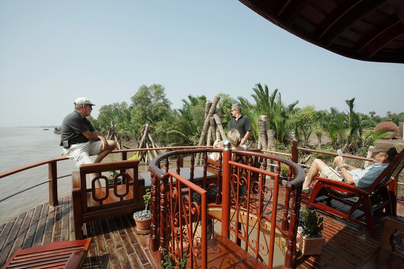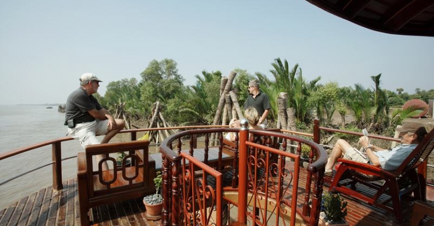 Trải nghiệm dịch vụ du thuyền Lecochichine, du khách sẽ được thưởng thức những món ăn đặc sản miền Tây Nam Bộ như hủ tiếu mỹ tho, ốc gạo, cháo cá lóc… được chế biến bởi các đầu bếp nổi tiếng. Thật là tuyệt vời khi vừa được ngắm nhìn cảnh sông nước hữu tình vừa được thưởng thức những món ăn ngon trên sông nước thì còn gì bằng phải không. Hơn nữa du khách còn được trải nghiệm những dịch vụ chất lượng “5 sao” như spa, câu cá, tắm nắng, ngắm cảnh, đọc sách và nghe hướng dẫn viên chia sẻ về sự hình thành, nền văn hóa, lối sông mộc mạc của người dân nơi đây.