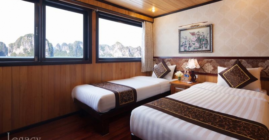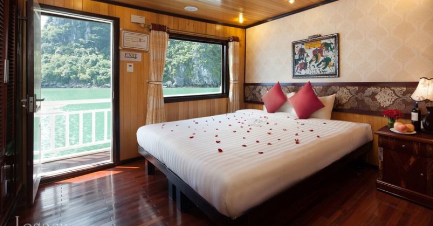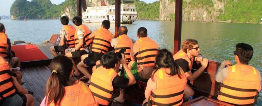 7:30 – 8:00 Xe đón khách tại khách sạn ở Hà Nội và đưa khách tới Vịnh Hạ Long bằng shuttle bus. Đến cảng Tuần Châu, lên tàu Legacy Legend, quý khách sẽ thưởng thức đồ uống chào mừng, gặp gỡ thuyền trưởng và thủy thủ đoàn, nghe thông báo về các quy định trên tàu.