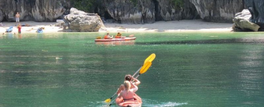 16:30 Tàu sẽ đưa quý khách tới Vịnh Lan Hạ, một phần của di sản UNESCO Vịnh Hạ Long nhưng ít du khách hơn và ít ô nhiễm hơn. Ở đây quý khách sẽ tham gia hoạt động chèo thuyền kayak khám phá vẻ tuyệt diệu, yên bình của vịnh.