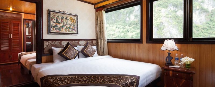 6:30 Khách dậy sớm, tham gia hoạt động Tai Chi trên boong tàu, ngắm cảnh bình minh trên vịnh với một tách trà hoặc cà phê trong khi tàu quay trở lại Vịnh Hạ Long. Dùng bữa sáng vào lúc 7:00