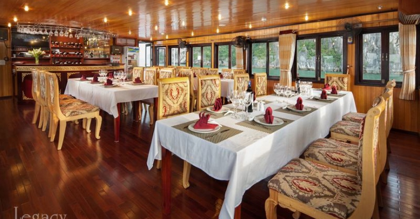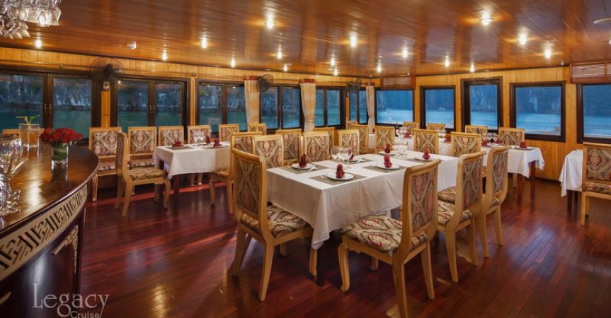 Vào khoảng 16:00, quý khách sẽ quay trở lại tàu Legacy Legend, dùng bữa tối và tham gia các hoạt động buổi tối trên tàu.