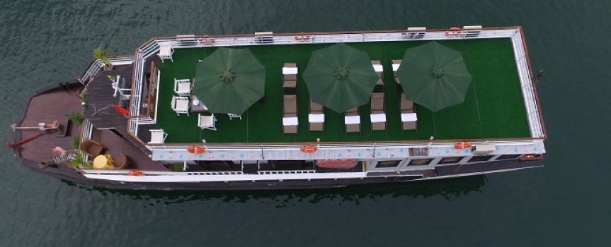 15:30. Di chuyển bằng thuyền con đến hang Thiên Cảnh Sơn. Hướng dẫn viên của chúng tôi sẽ đưa bạn đến một hang động khổng lồ với nhiều nhũ đá và măng đá tuyệt đẹp với nhiều hình dạng khác nhau. Sau khoảng nửa giờ tham quan, bạn sẽ quay trở lại thuyền con và trở lại thuyền. Sau đó quay trở lại hành trình để giải trí hoặc tham gia tắm nắng, tận hưởng cuộc bơi lội trong làn nước trong vắt. Tham gia lớp học nấu ăn cùng với đầu bếp của chúng tôi. Quý khách có thể chơi cờ, nói chuyện, cùng nhau thư giãn và dành thời gian để chụp ảnh tại những địa điểm đẹp.