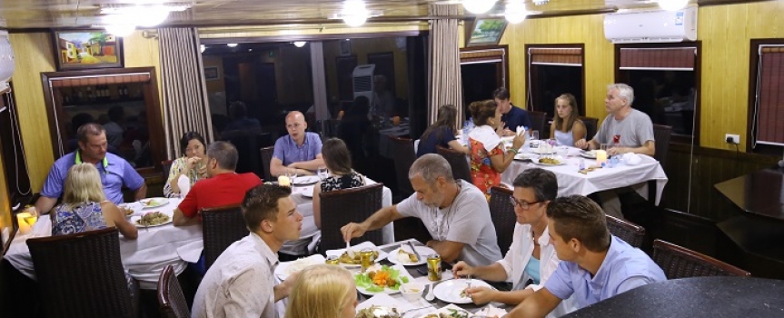 19h00: Bữa tối theo phong cách Việt Nam được phục vụ trên tàu.