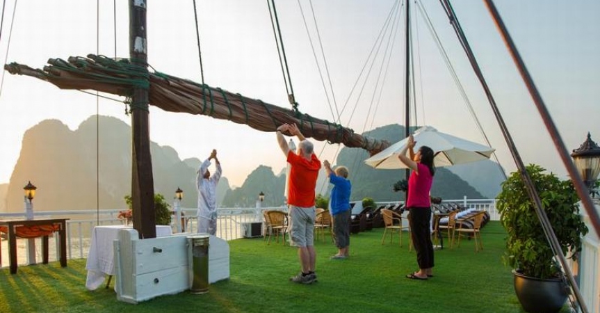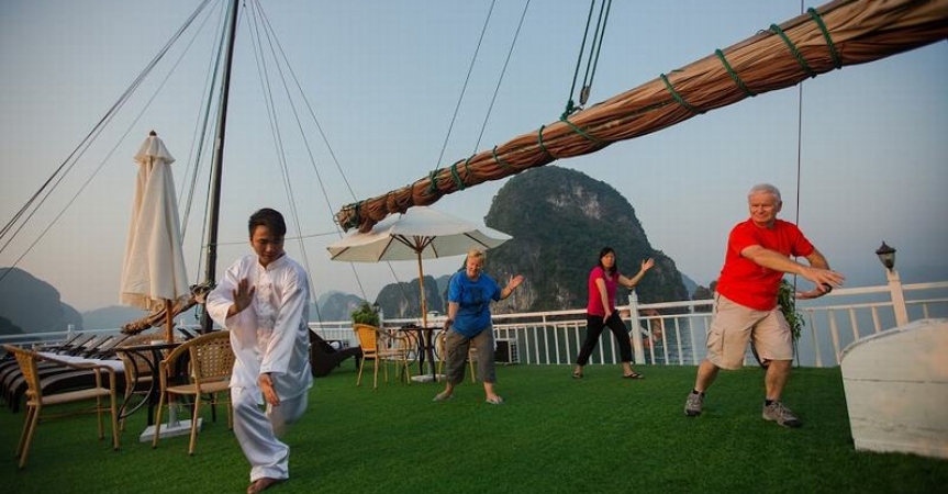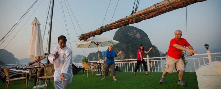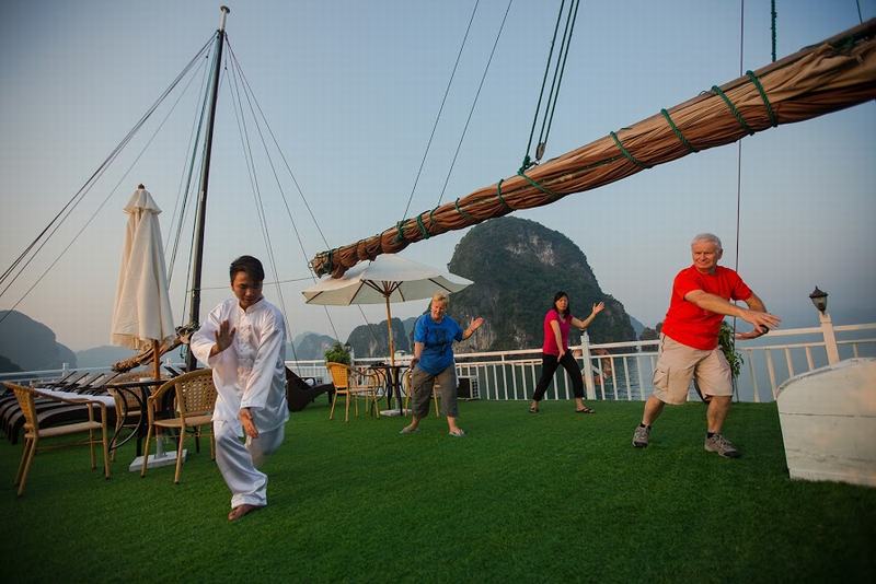 06.30 Quý khách tham gia thể dục Dưỡng Sinh trên boong tàu dưới sự hướng dẫn của Thuyền Trưởng.