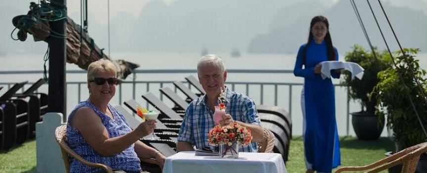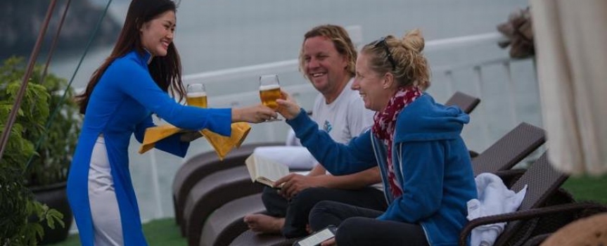 17.45  Quý khách tham gia Bữa tiệc Hoàng hôn trên sundeck với chương trình Happy Hours ( mua 2 tặng 1 )