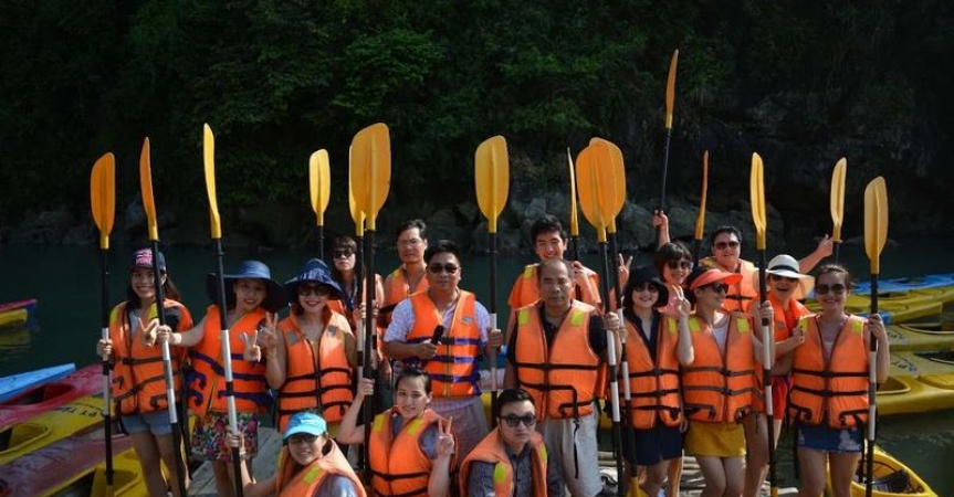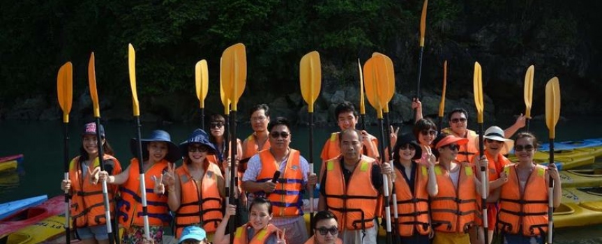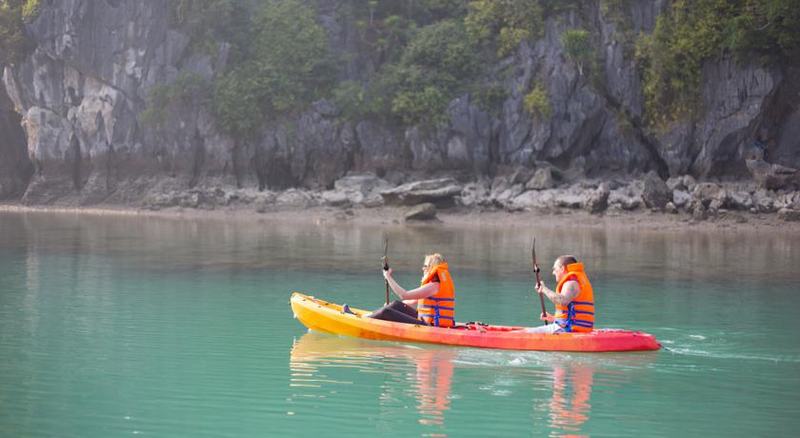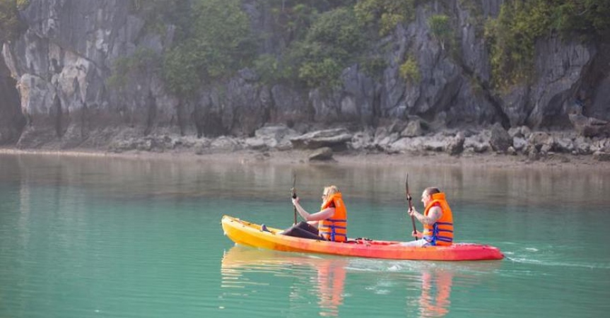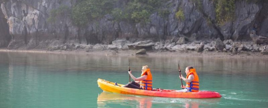 15:00  Tàu đưa quý khách đến khu vực Titop. Tại đây, quý khách có thể chèo kayak khám phá vịnh Hạ  Long, thăm hang Bồ