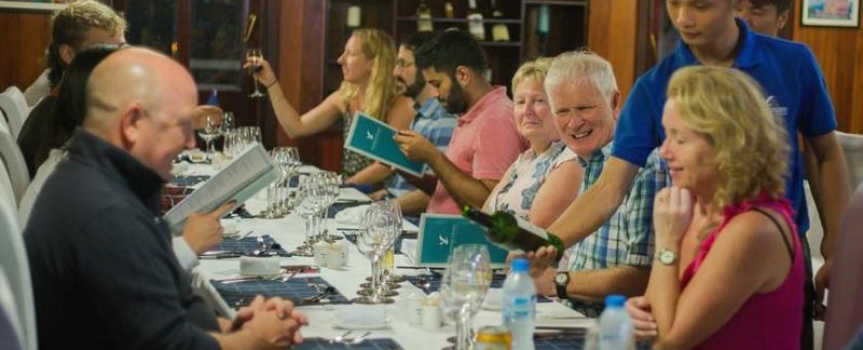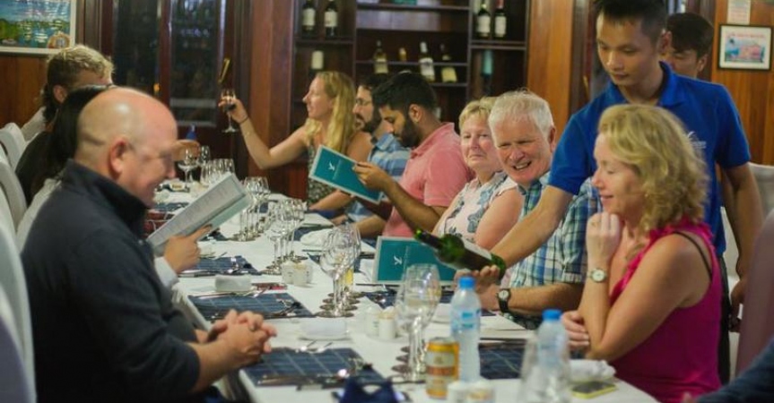 19h30  Quý khách ăn tối trên tàu với nhiều món hải sản hấp dẫn, cả đồ ăn Việt Nam và đồ ăn Á.