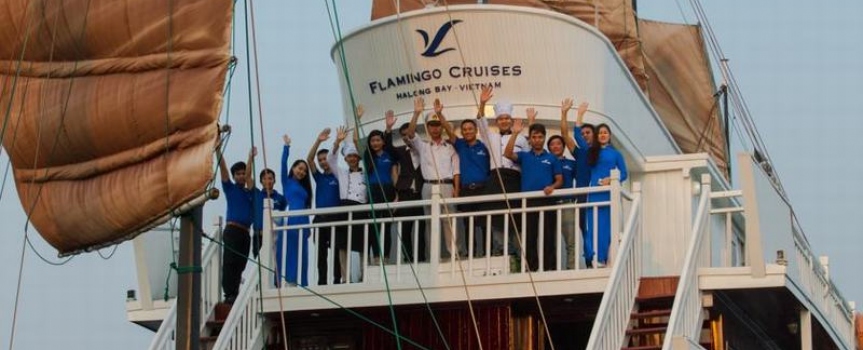 Đội ngũ nhân viên và thủy thủ đoàn của du thuyền Flamingo được đào tạo bài bản, chuyên nghiệp, luôn nở nụ cười và tận tâm phục vụ Quý du khách trong suốt hành trình khám phá vịnh Hạ Long huyền thoại.