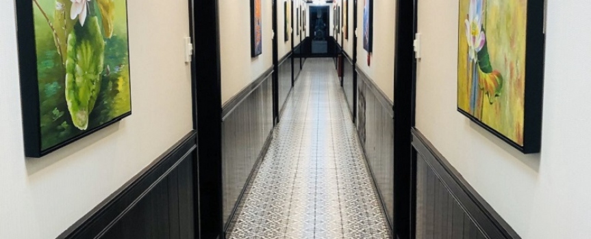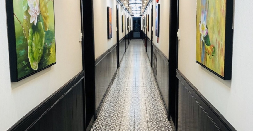 - Tầng 1: 10 phòng ngủ và bàn lễ tân