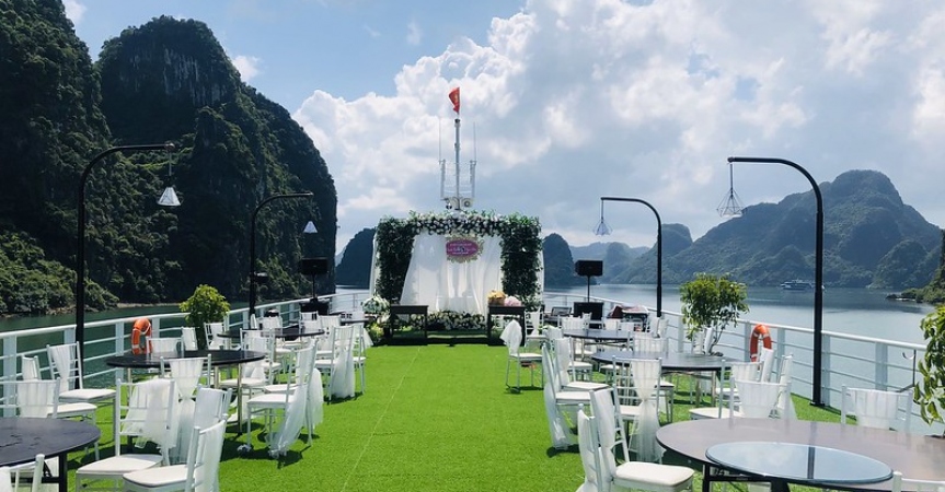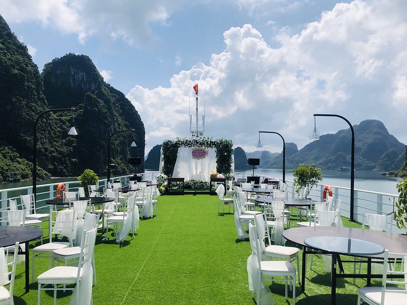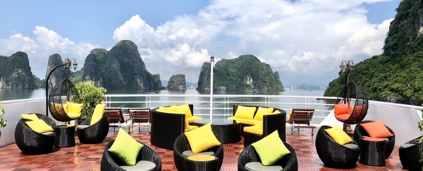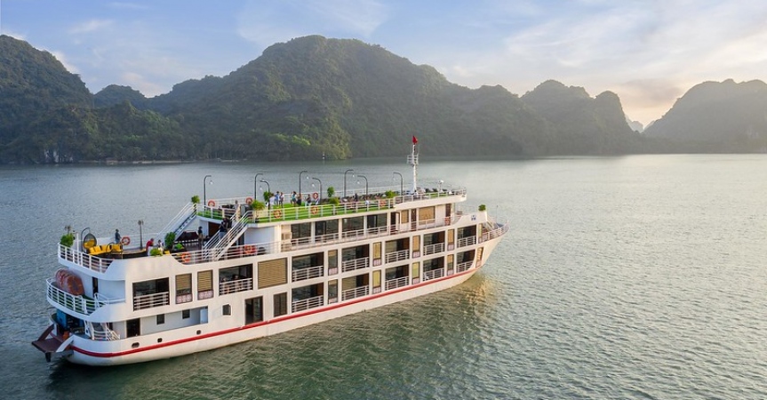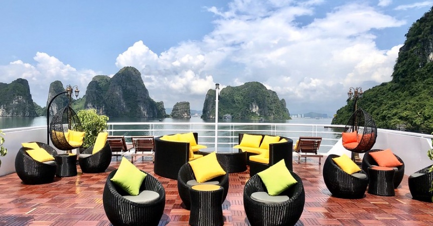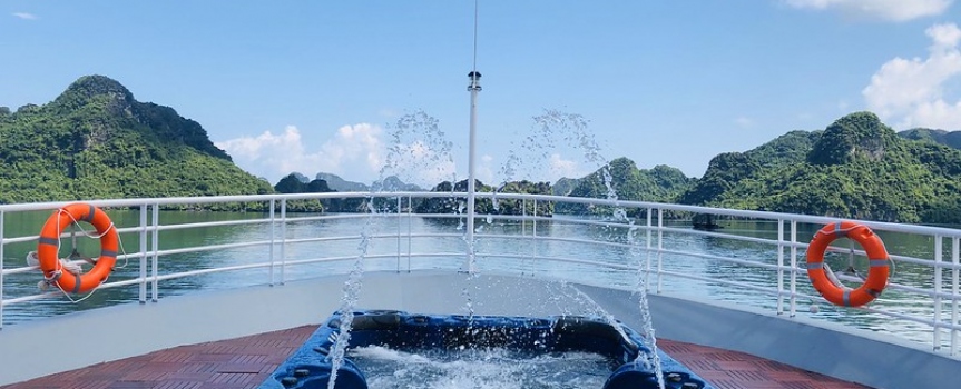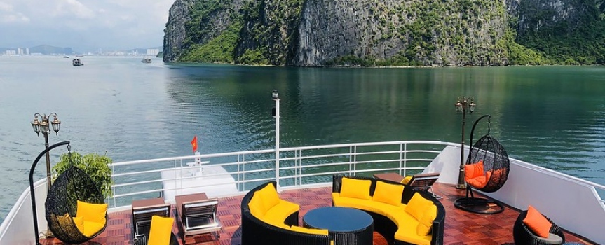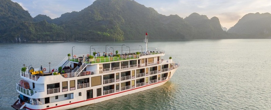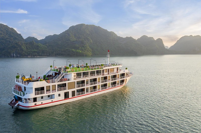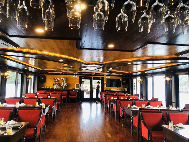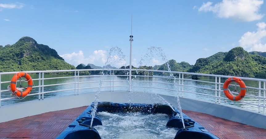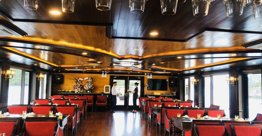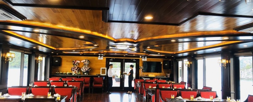 13h00: Thưởn thức bữa trưa. Trong khi du thuyền bắt đầu hành trình đến vịnh Lạn Hạ- một phần thuộc quần thể vịnh Hạ Long nơi ít du khách qua lại.