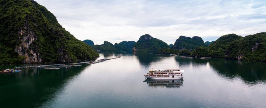12h00: Quý khách di chuyển xuống tàu Maya Cruise. Trên đường đi xuống, quý khách sẽ có dịp chiêm ngưỡng con kênh Cái Tráp mới được đưa vào hoạt động tại Hải Phòng.