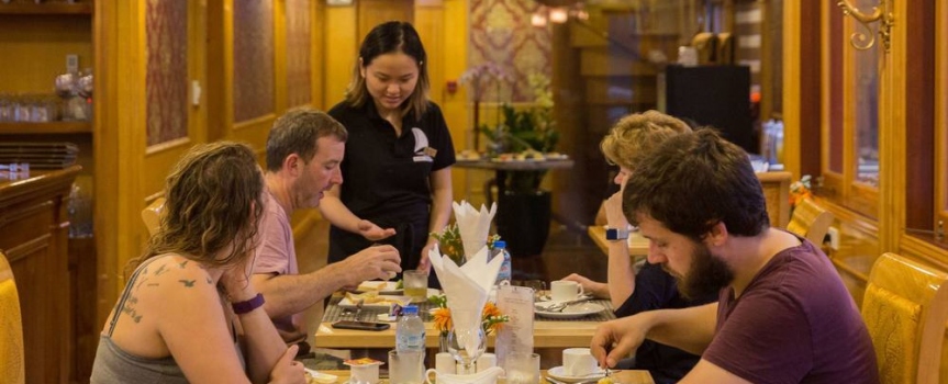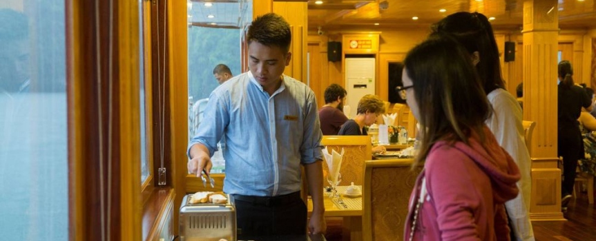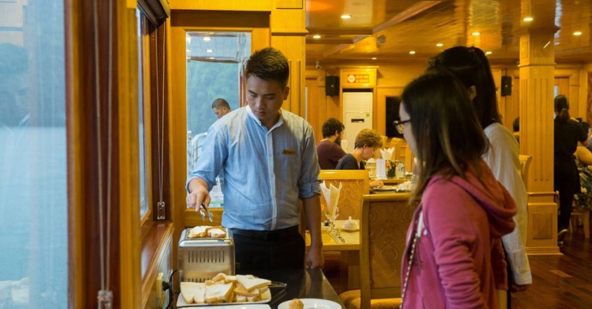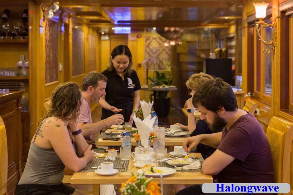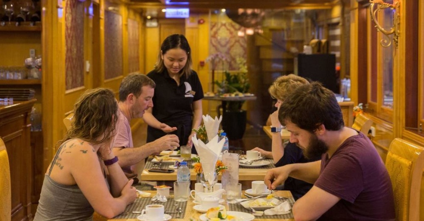 10h00: Quý khách thưởng thức một bữa ăn nhẹ trong khi tàu quay trở về