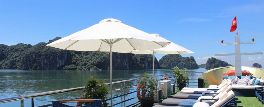 16h00: Quay trở lại tàu, quý khách có thể ngắm cảnh hoàng hôn tuyệt đẹp trên vịnh Bắc Bộ. Tham gia một lớp học nấu ăn truyền thống trên tàu từ những vị đầu bếp chuyên nghiệp và thử nấu các món ăn theo phong cách Việt Nam; tham gia Sunset party và Happy Hour