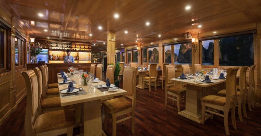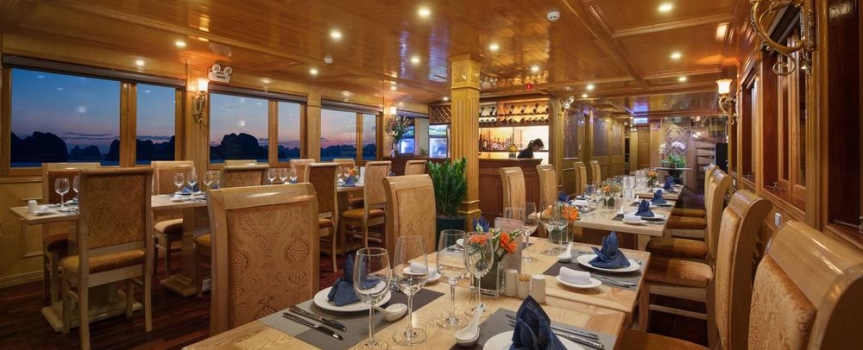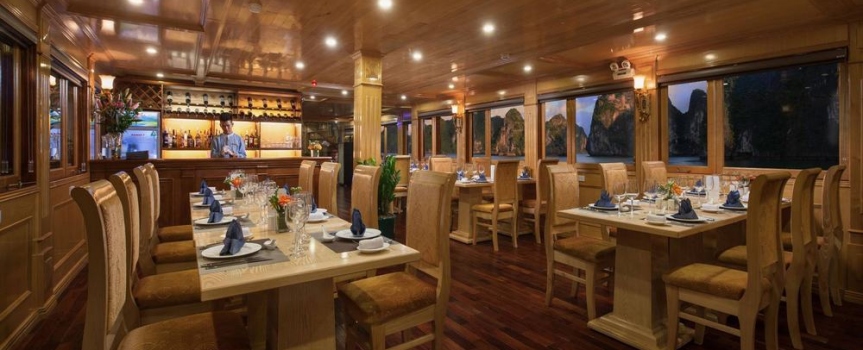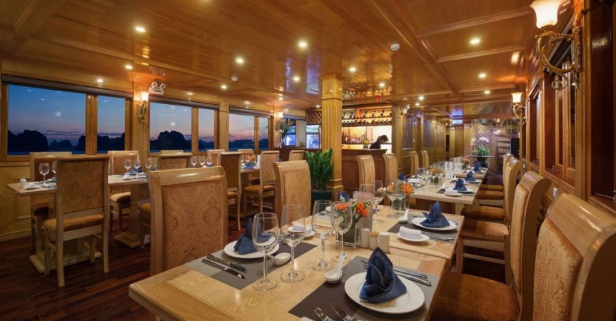 21h30: Thưởng thức phong cảnh tuyệt đẹp của vịnh vào ban đêm trên boong tàu. Thư giãn với các loại đồ uống được phục vụ ở quầy bar. Tham gia câu mực đêm, xem phim trong nhà hàng.
