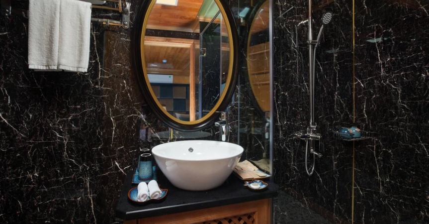 06h00: Quý khách có thể thức dậy sớm để chiêm ngưỡng cảnh bình minh tuyệt đẹp trên vịnh và tham gia tập luyện với lớp học Taichi trên boong tàu. Sau đó dùng bữa sáng và tiếp tục cuộc hành trình khám phá khu vực Hang Tối – Hang Sáng.