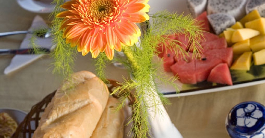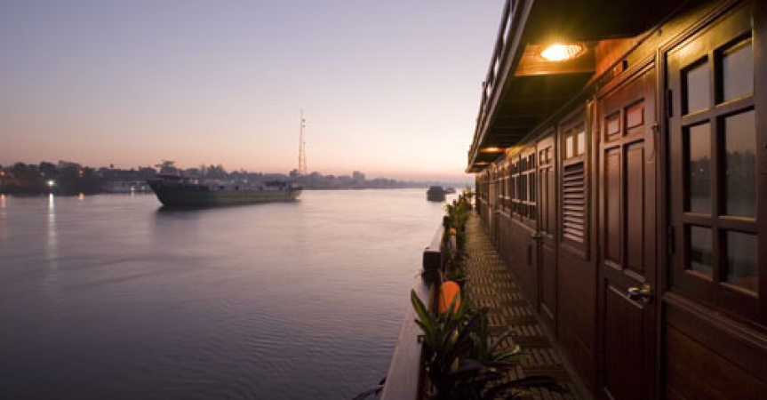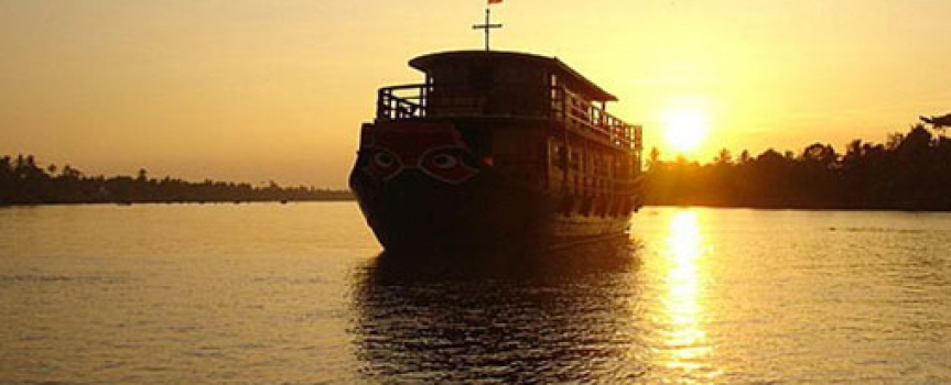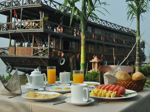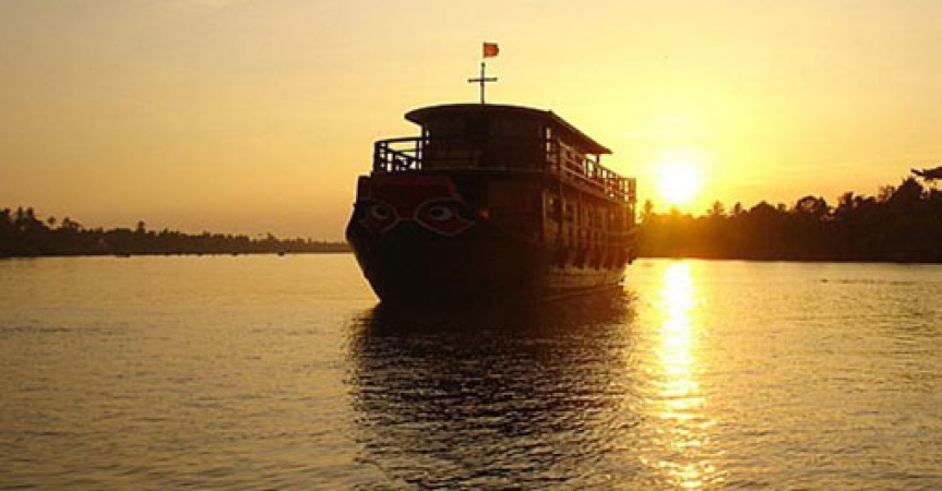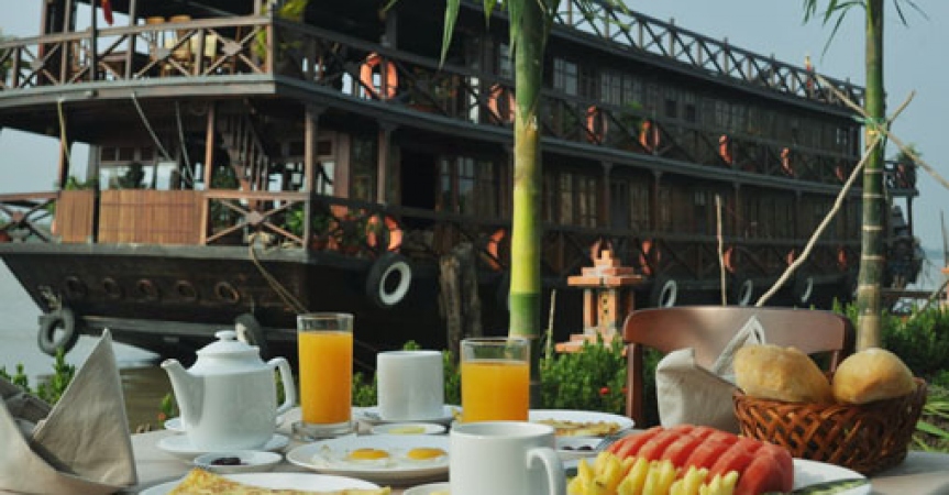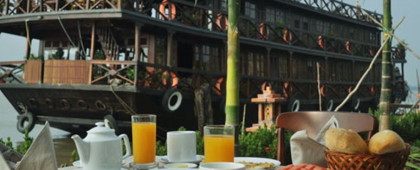 - Ăn sáng trên du thuyền, ngắm mặt trời mọc trên khoang tàu dọc trên sông Mekong