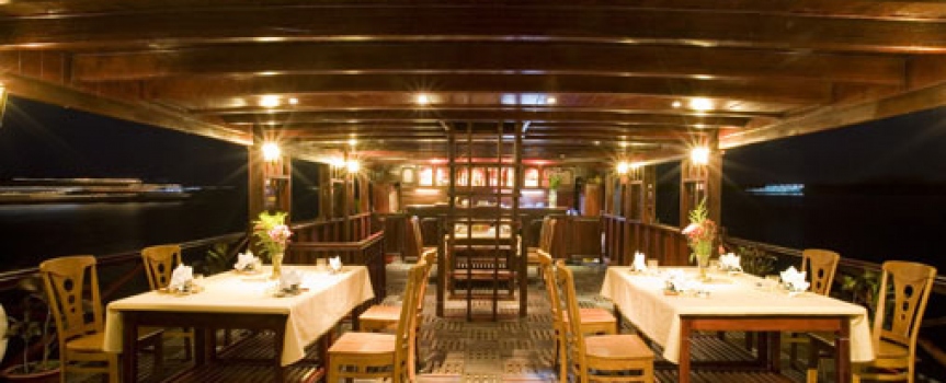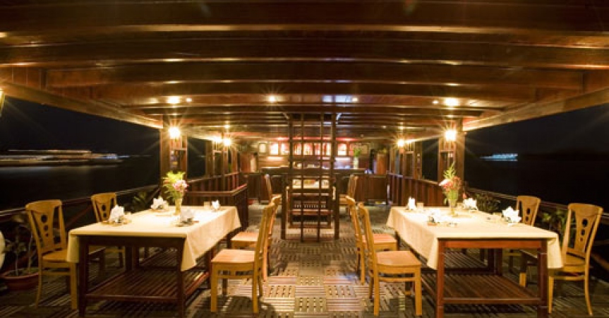 -Dùng bữa tối, thư giãn và nghỉ đêm trên du thuyền