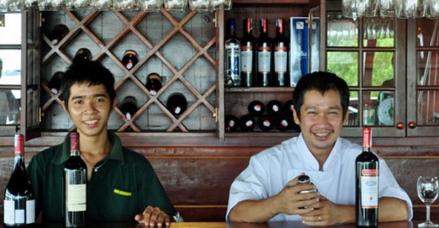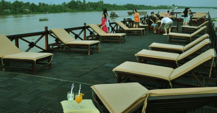 -Tàu tiếp tục di chuyển đến khu nghỉ dưỡng sinh thái Mekong Lodge - nơi có hơn 40 căn phòng nghỉ dưỡng và nhà hàng nhìn ra sông với diện tích hơn 1000m2 nằm dọc bờ sông Tiền
