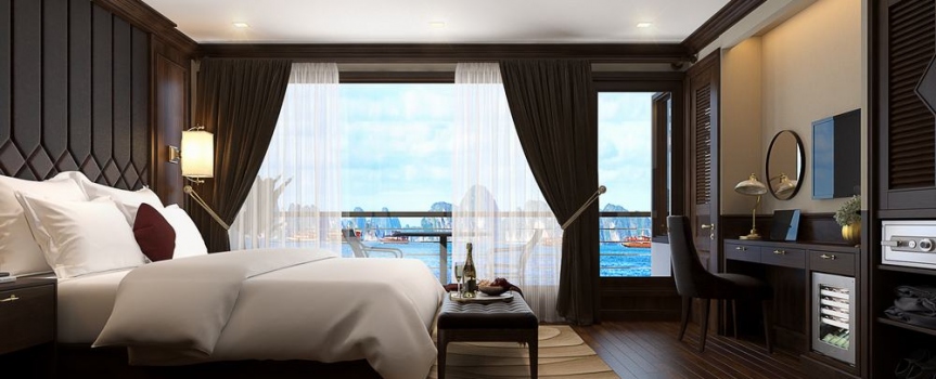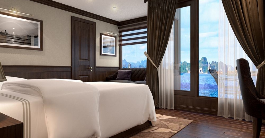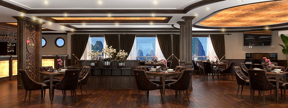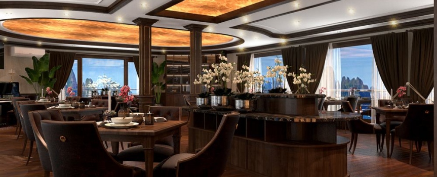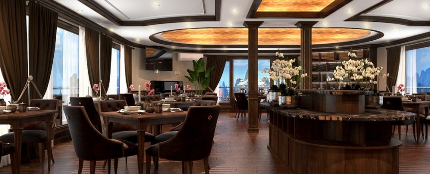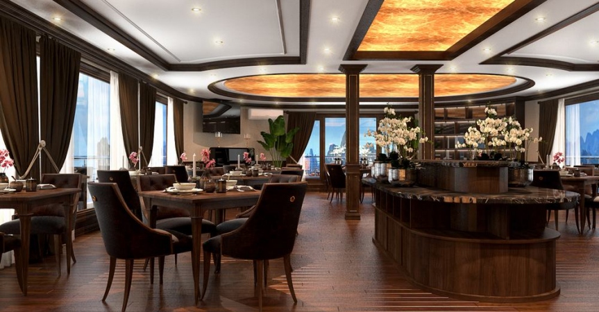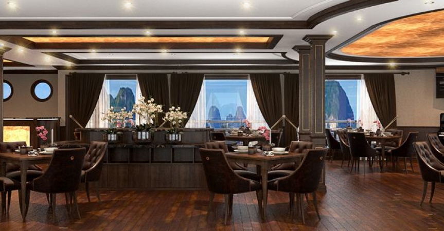 12:00: Quay lại tàu chuyển tải, bữa trưa sẽ được phục vụ trên tàu theo phong cách ẩm thực truyền thống dân tộc Việt.