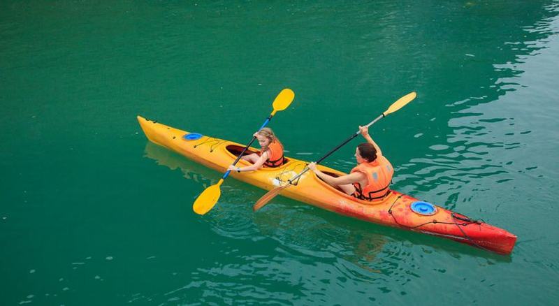 09h30 : Quý khách chuyển sang tàu ngày, di chuyển đến Vịnh Lan Hạ. Tàu sẽ dừng lại để quý khách tham gia chèo thuyền kayak khám phá quanh khu vực.